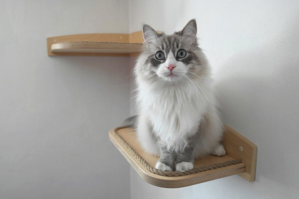 Le mensole a parete rappresentano la soluzione ideale per appartamenti e abitazioni di piccole dimensioni: non occupano lo spazio del pavimento, in quanto si possono fissare direttamente ai muri e consentono al micio di arrampicarsi in alto, saltando da una mensola all'altra ed esplorando in questo modo anche lo spazio verticale della casa.