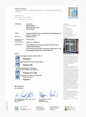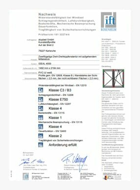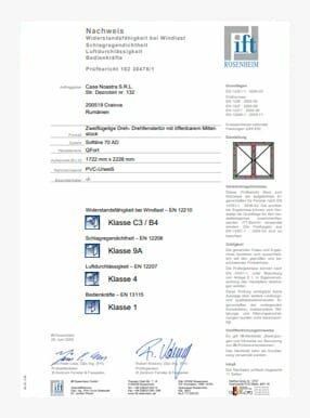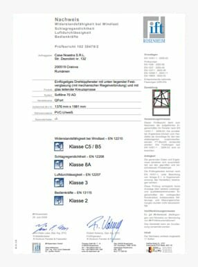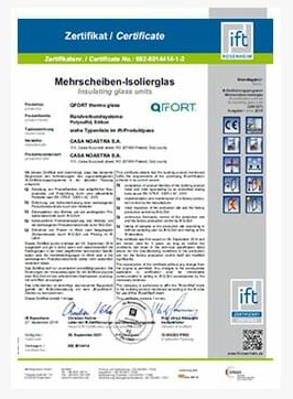 Inoltre, QFORT detiene i certificati di conformità rilasciati dall'IFT Rosenheim Istituto di Germania, il più rinomato organismo di pcollaudo e certificazione in Europa nel settore dei serramenti. L'Istituto effettua prove di resistenza al carico del vento, di tenuta all'acqua e di permeabilità all'aria, nel pieno rispetto delle norme europee vigenti, e garantisce, attraverso periodici controlli in stabilimento, che la produzione sia conforme allo standard richiesto.
